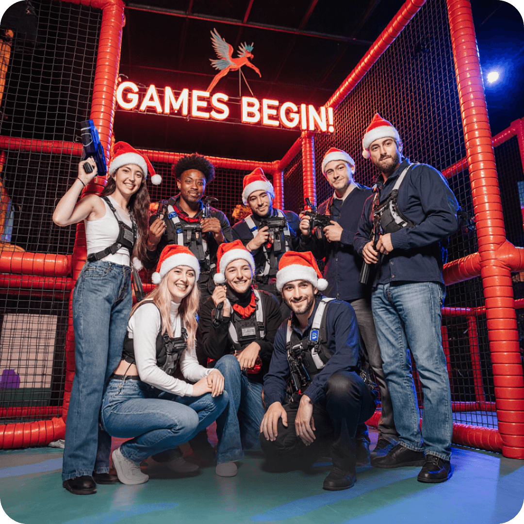 In unserer Location in Bern geht’s nicht um stille Nächte, sondern um laute Erlebnisse. Ob als Firma, Abteilung oder Verein – hier kommt euer Team ins Schwitzen: Lasertag, Valo Arena, Ninja Tag und viele weitere Challenges bringen euch auf Touren.